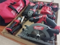 1pc angle grinder, 1pc drill, 1pc screwdriver 1/4 pulses, 1pc straight saw, 1pc circular saw, 1pc lamp, 2pcs batteries, 1pc battery charger