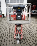 Manufacturer: Dino Lift Model: 180T-1 Year of build: 2016 Condition: Used Data: Max. working height: 18,05 m Platform height: 16,05 m Max. reach: 11,10 m Platform lifting capacity: 215 kg Platform dimensions LxW: 1,40 x 0,80 m Swivel range: 360° / endlos Total dimensions LxWxH: 7,43 x 1,85 x 2,10 m Transport dimensions LxWxH: 7,43 x 1,85 x 2,10 m Support width both sides: 4,29 m Support length: 3,88 m Ground pressure: 13 kN Ground clearance: 0,20 m Drive type: Battery 230 V Empty weight: 1.840 kg Special features: Support load 75 kg, swivel work basket, socket in the work basket, maneuvering drive.