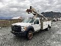 Ford V10 6.8 L Gasoline Engine, 2015 US EPA Label, Automatic Transmission, 6500 lb Front Axle, 14706 lb Rears, 19500 lb GVWR, 225/70R19.5, Spring Suspension, 166 in Wheelbase, PTO, Center Mounted, One-Person Articulating-Telescopic Boom, Utility Body, Cummins 5.5HGJAD 5.5 kVA Gasoline Generator Set, 13 ft 3 in x 96 in Bed, Aluminum/Steel Combination Frame, Ball Hitch