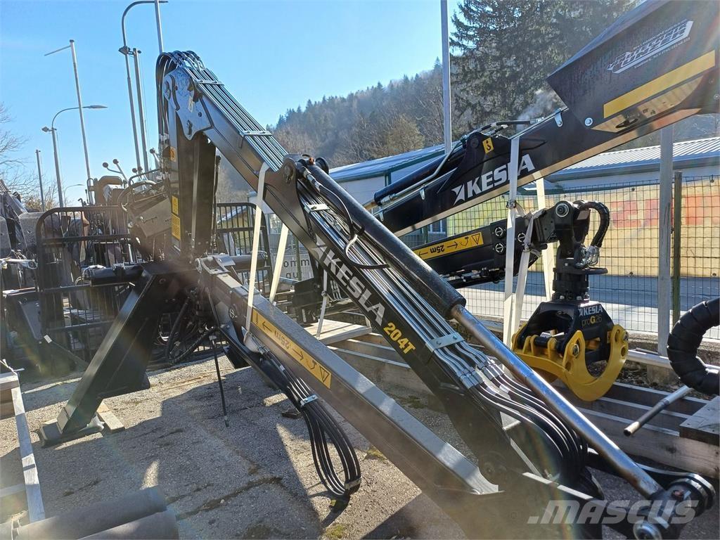 Kesla 204T - Maximale Reichweite 6,80 m, Ausschub 1,65 m, Hubmoment 42 kNm, Hubkraft bei 4m Reichweite 795 kg, Schwenkkraft 8,0 kNm, Schwenkwinkel 380 °, Arbeitsdruck 190 bar, Gesamtgewicht 1.095 kg.